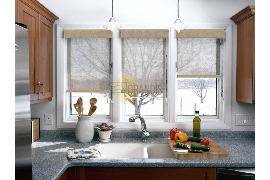Римские шторы для кухни на пластиковое окно двустворчатое (79 фото)