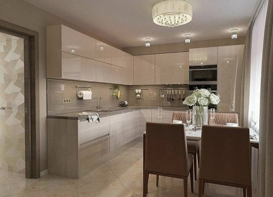Кухни в бежевых тонах интерьер современный 10кв.м