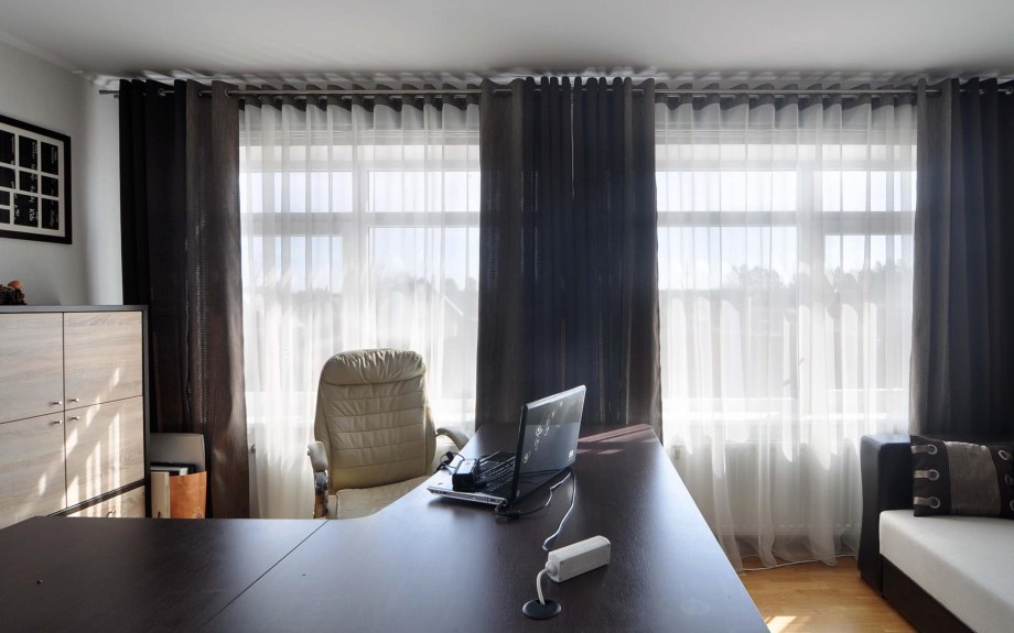 Темные обои и светлые шторы
