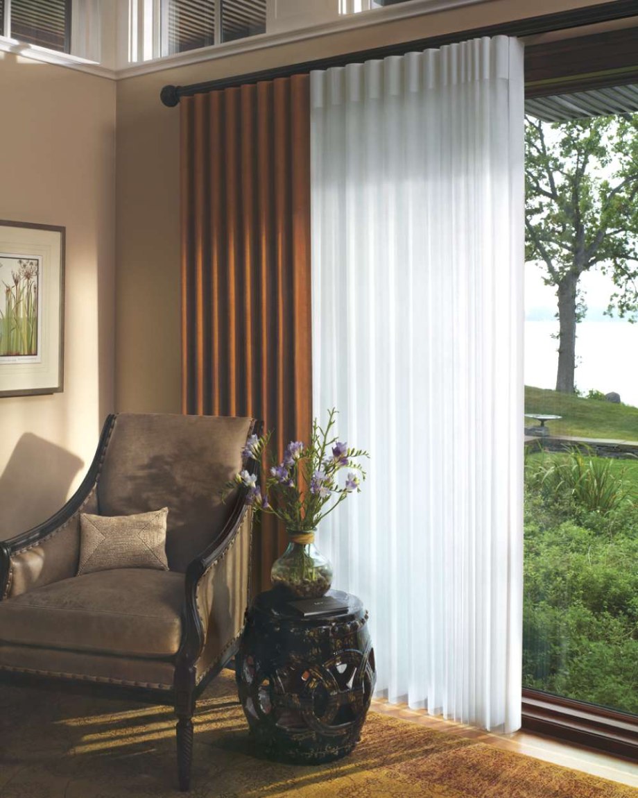 Комбинировать жалюзи и шторы в интерьере (77 фото)