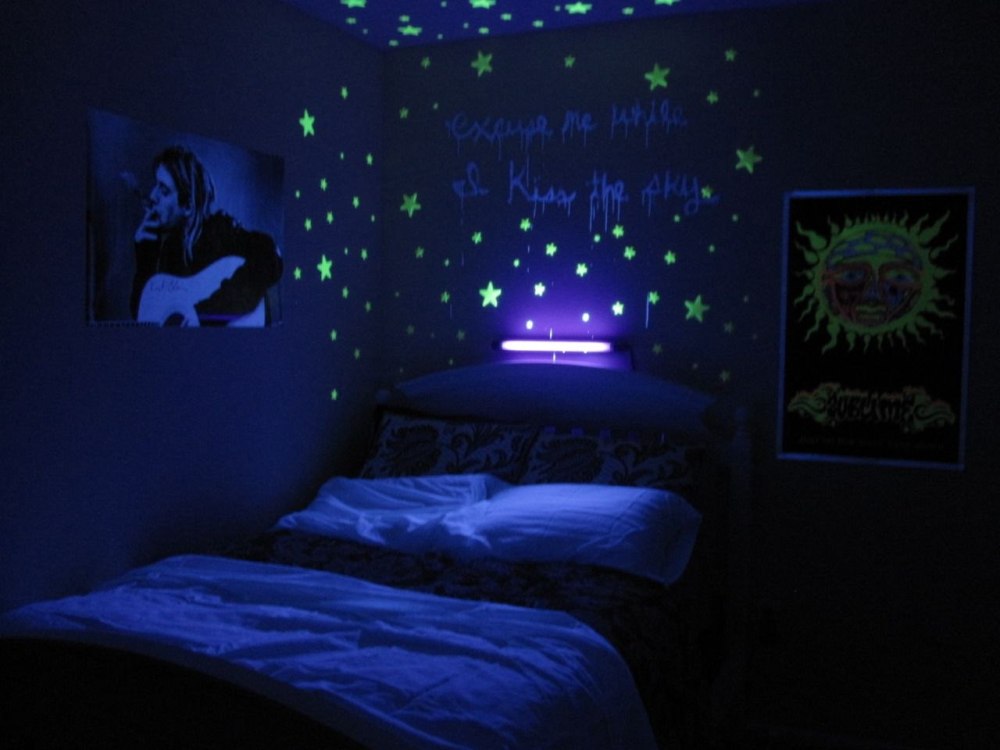 Комната для подростка с неоновой надписью над кроватью
