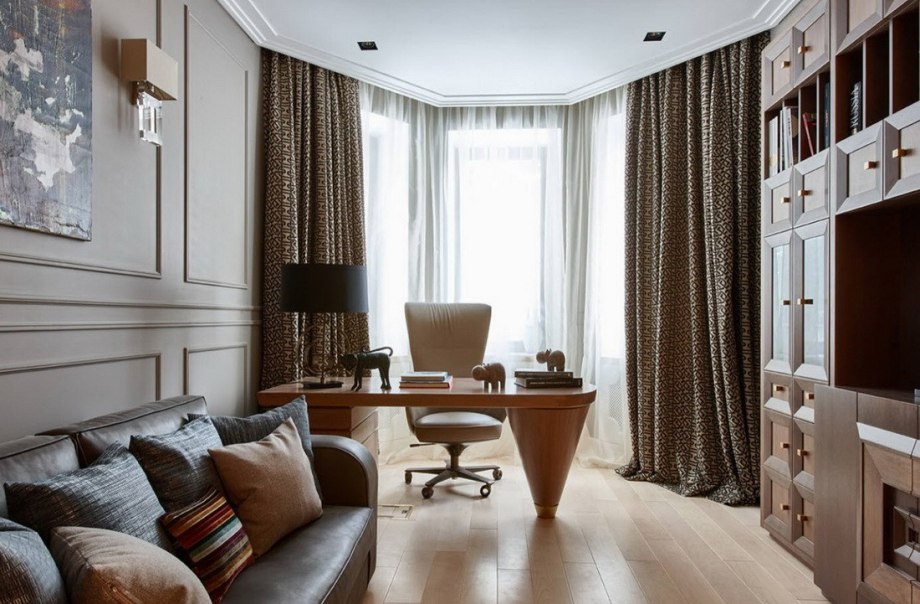 Светло коричневые шторы в интерьере