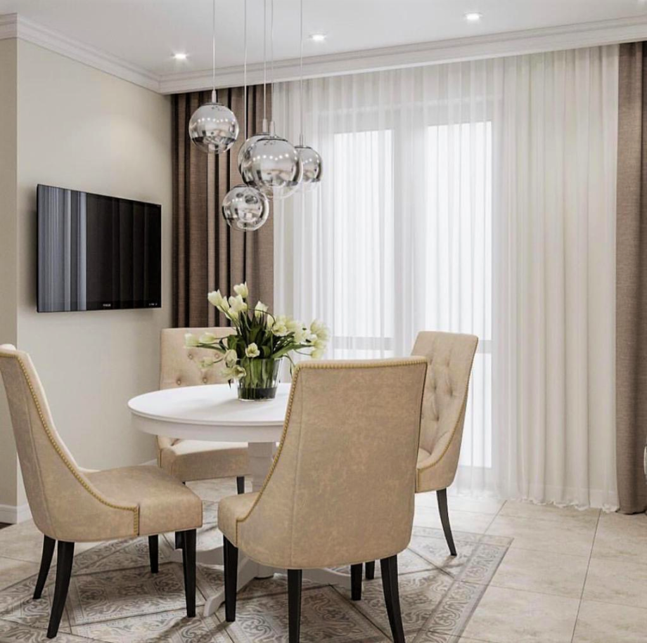 Гостиная столовая в бежевых тонах