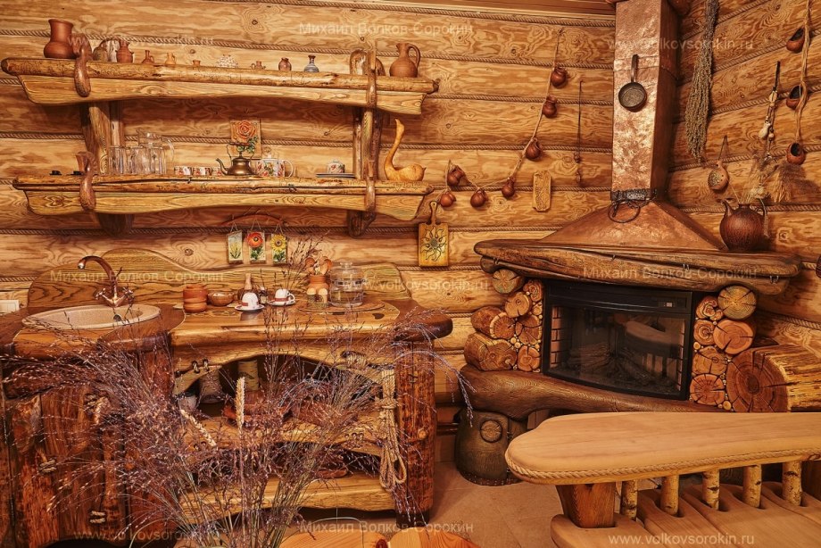 Дом из оцилиндрованного бревна интерьер кухня гостиная