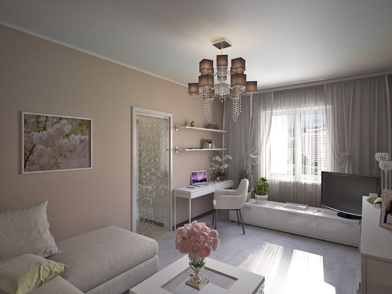 Интерьер комнаты в однокомнатной квартире