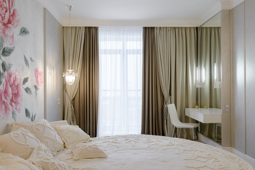 Шторы также предоставляют возможность изменения облика спальни в соответствии с сезонами. Легкие шторы лучше подходят для лета, создавая воздушную и свежую атмосферу, в то время как более плотные и тёмные варианты могут быть уютными и теплыми в зимний период.