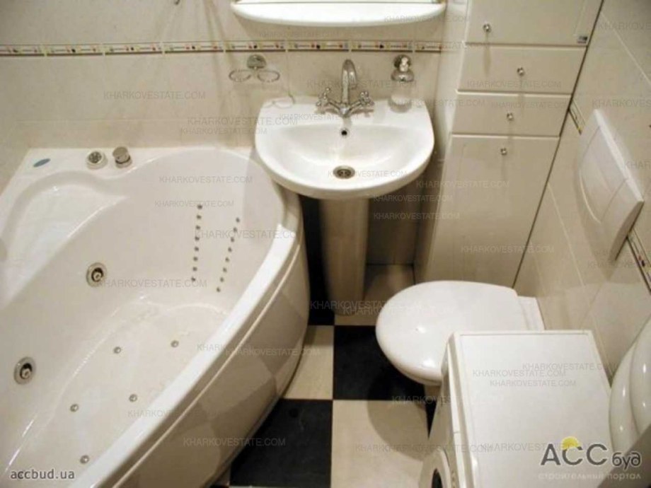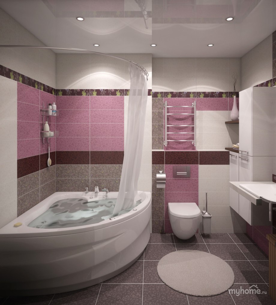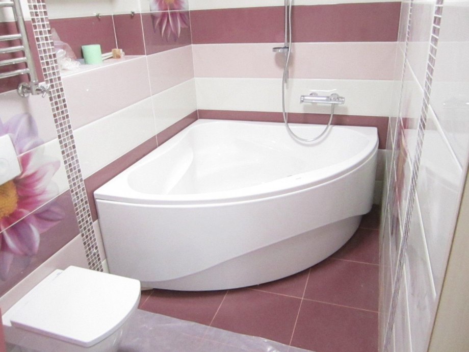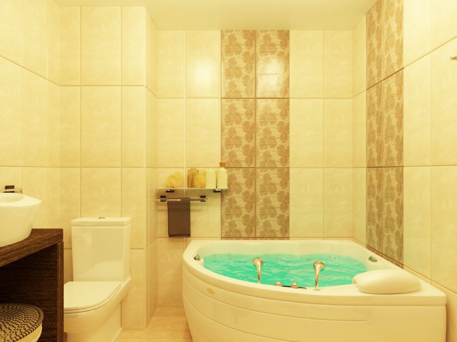 Интерьер ванной комнаты 4 кв.м с угловой ванной