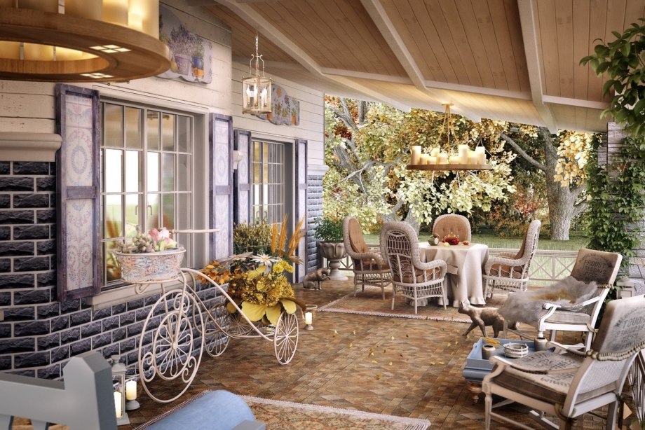 Интерьер кухни гостиной в стиле Прованс в загородном доме