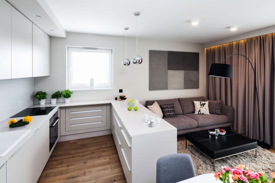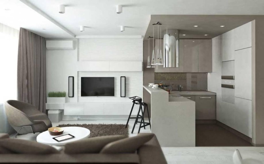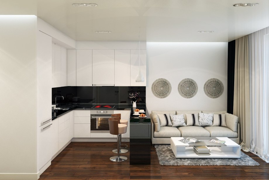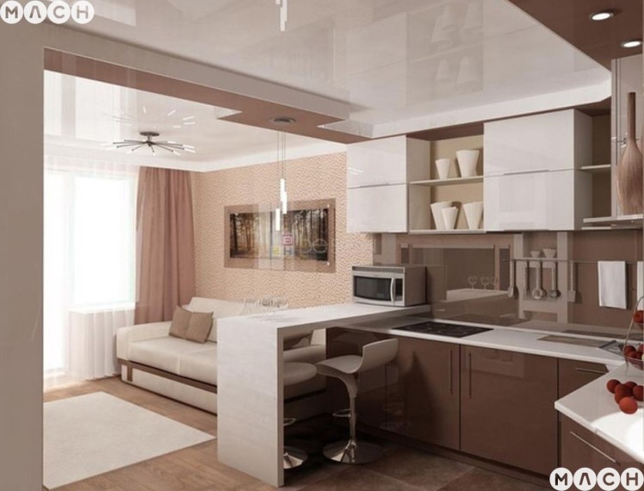 Маленькая п образная кухня совмещенная с гостиной (81 фото)