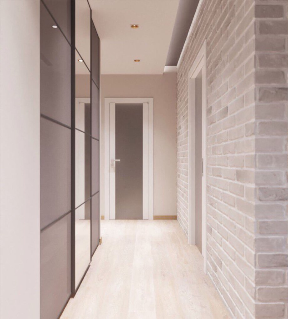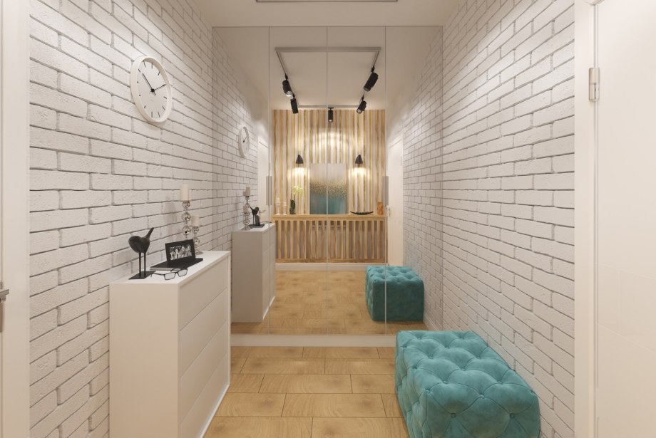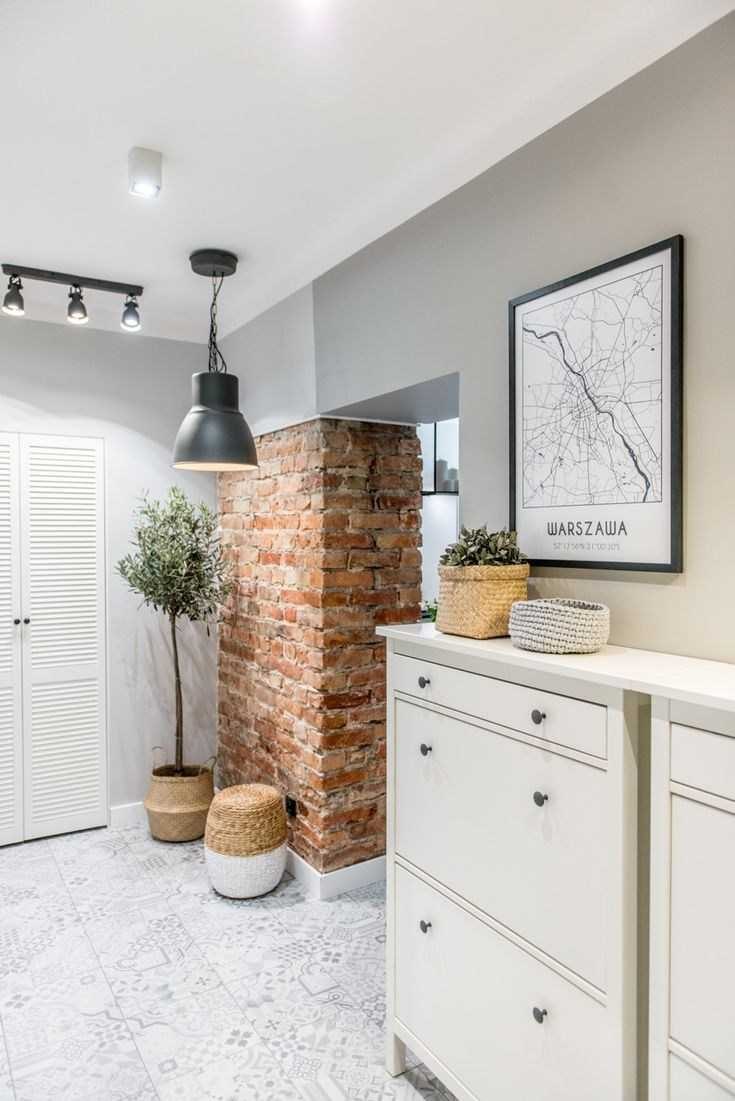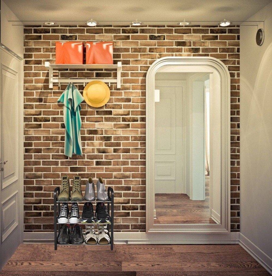 Прихожая с кирпичной стеной в светлых тонах (75 фото)