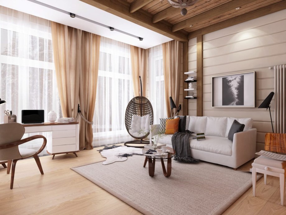 Скандинавский стиль в интерьере загородного дома из бруса (81 фото)