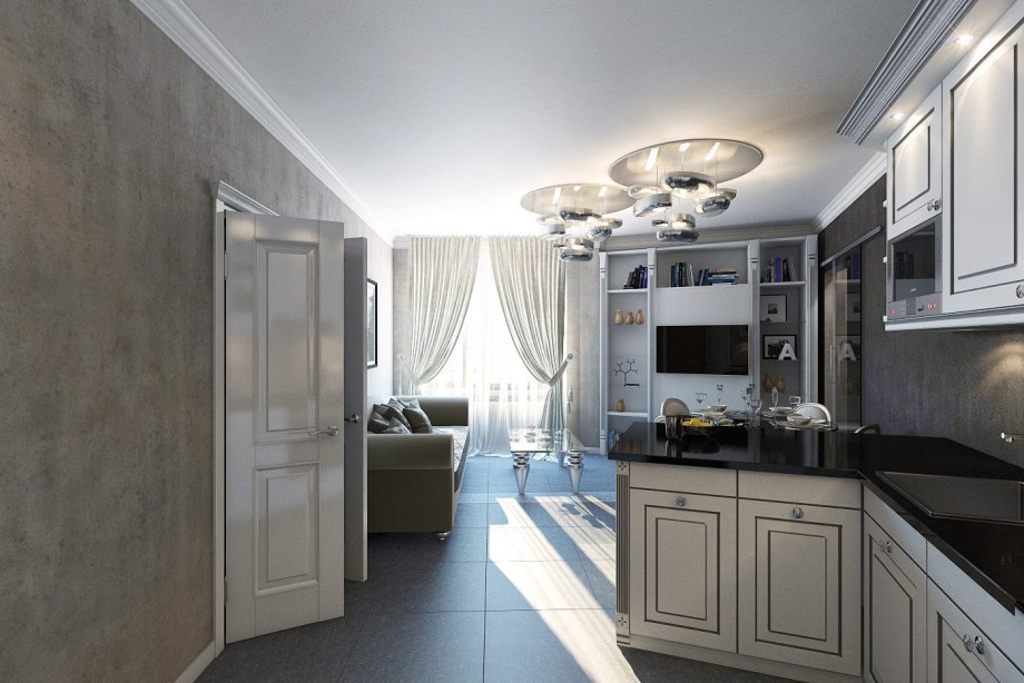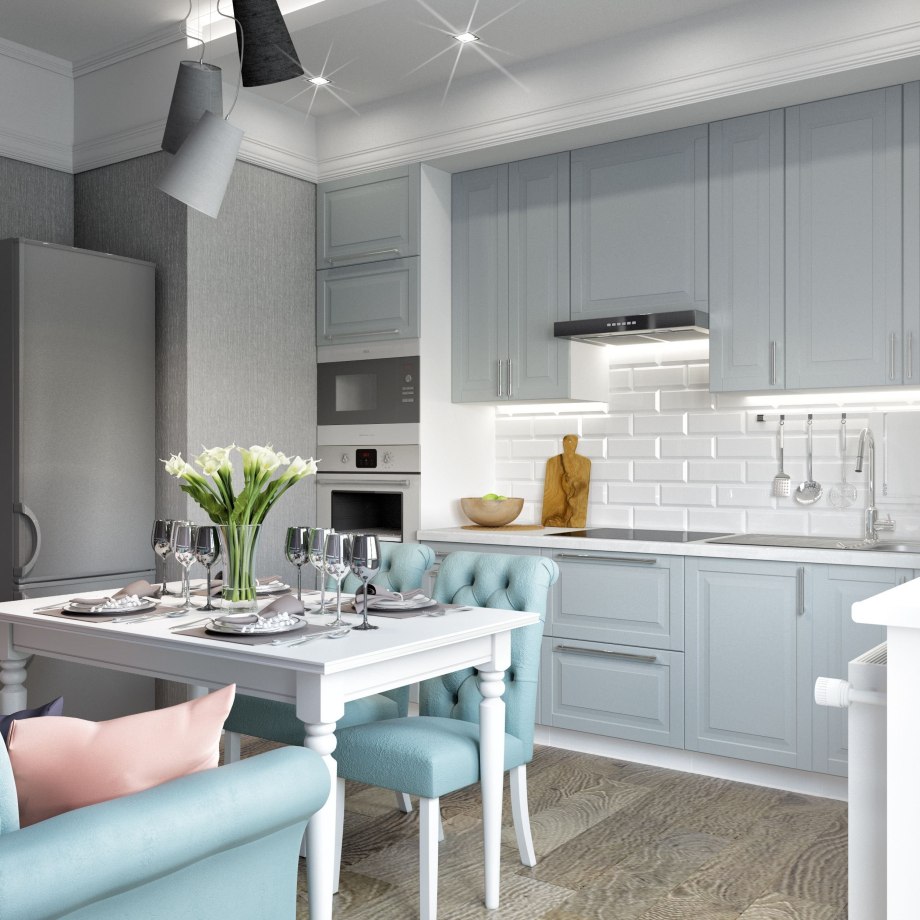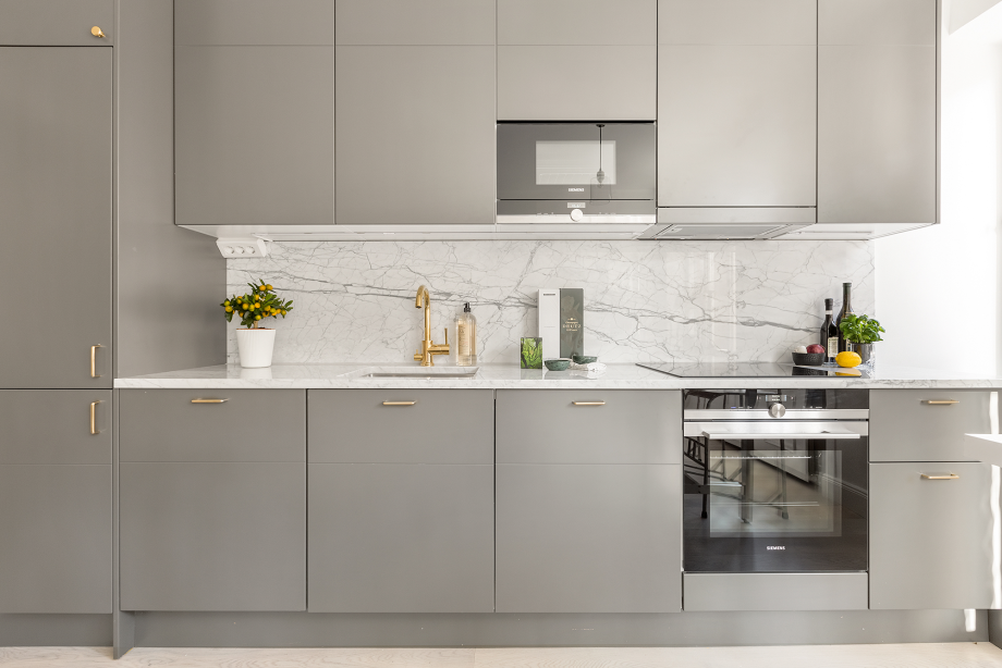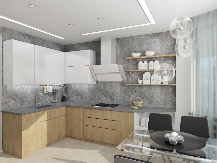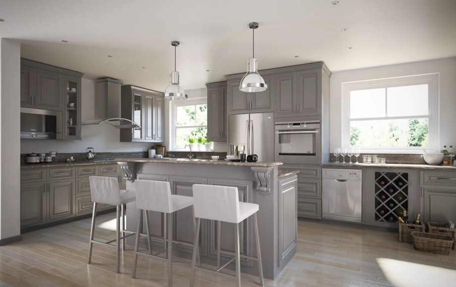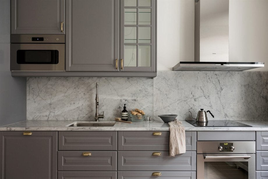 Шелковый серый цвет в интерьере кухни (80 фото)