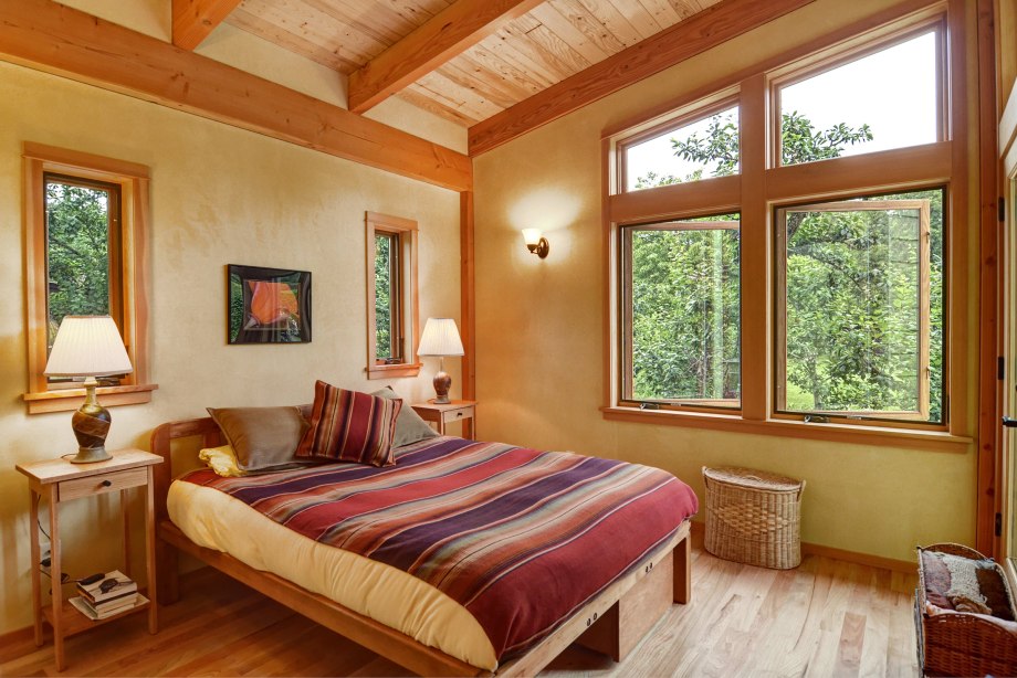 Интерьер спальни в каркасном доме