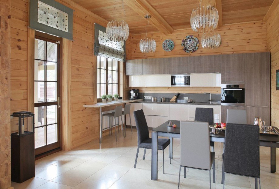 Кухня гостиная в деревянном доме дизайн интерьер (81 фото)