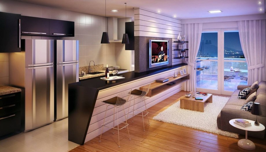 Холодильник в гостиной совмещенной с кухней (81 фото)