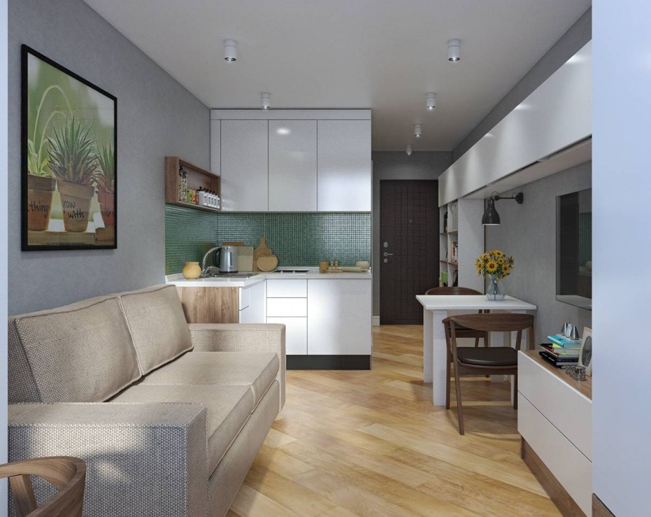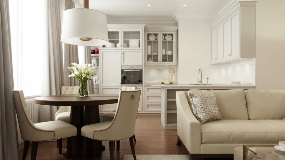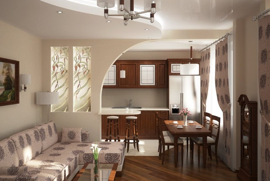 Дизайн кухни совмещенной с гостиной 20 кв.м