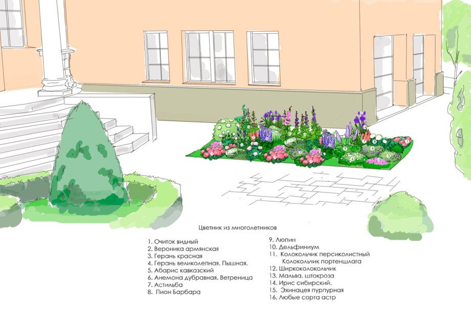 Клумба из луковичных схема непрерывного цветения из многолетников