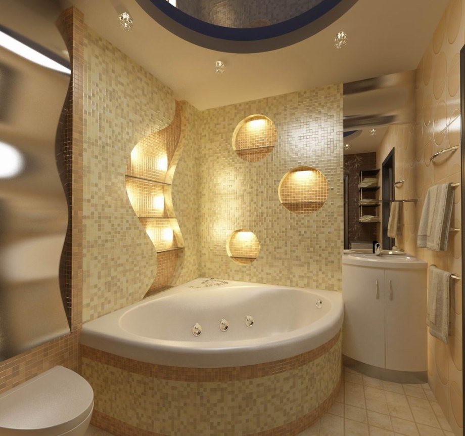 Маленький туалет с угловой ванной дизайн (78 фото)