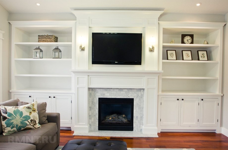 Камин встроенный в шкаф в гостиной