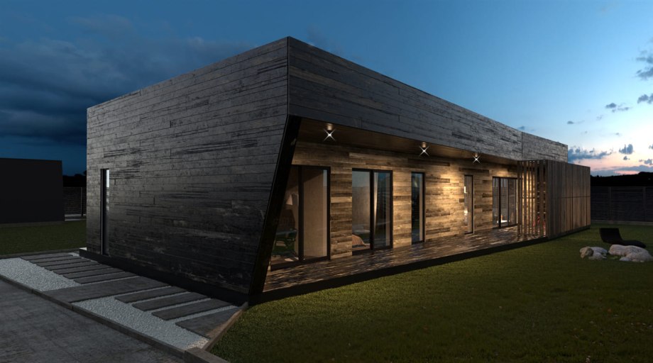 Одноэтажный каркасный дом с плоской крышей 100 кв