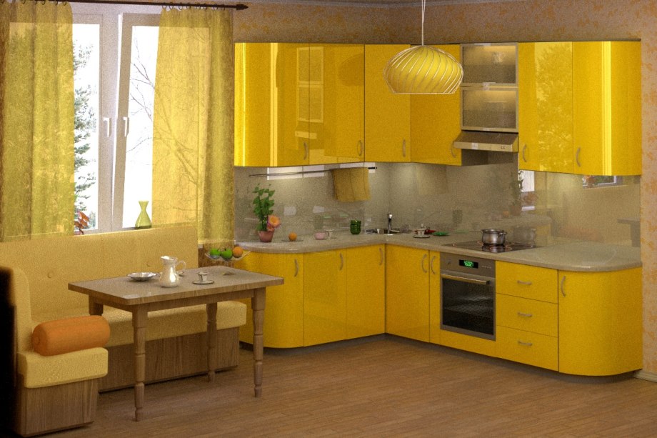 Желтая угловая кухня