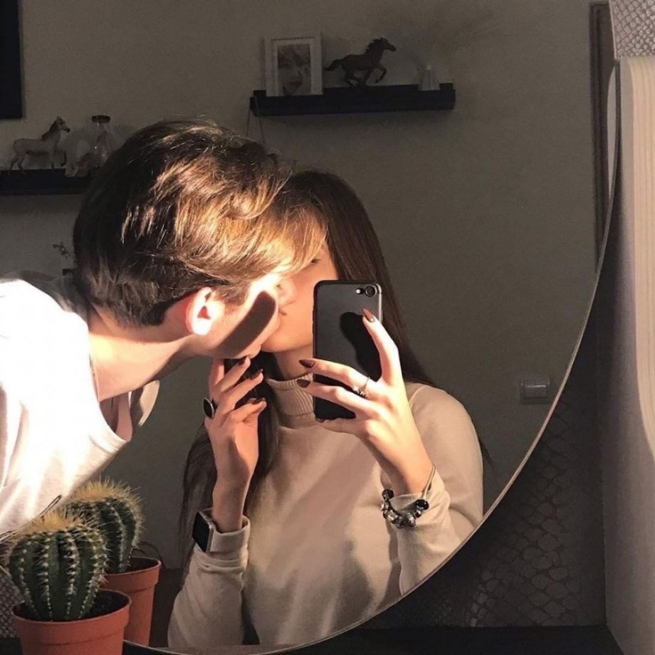 Парень с девушкой в зеркале