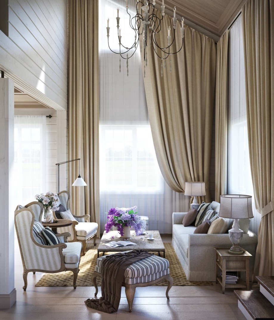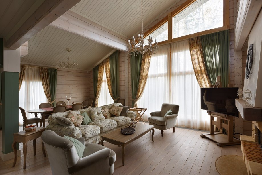 Шторы в гостиную в стиле Прованс в загородном доме