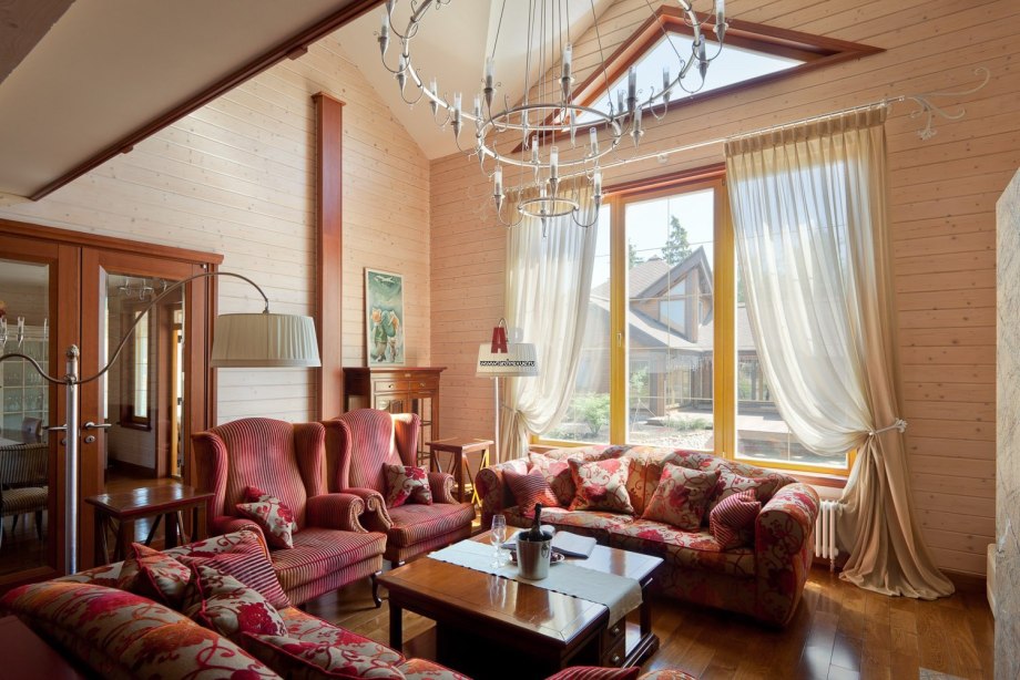 Шторы в интерьере деревянного дома