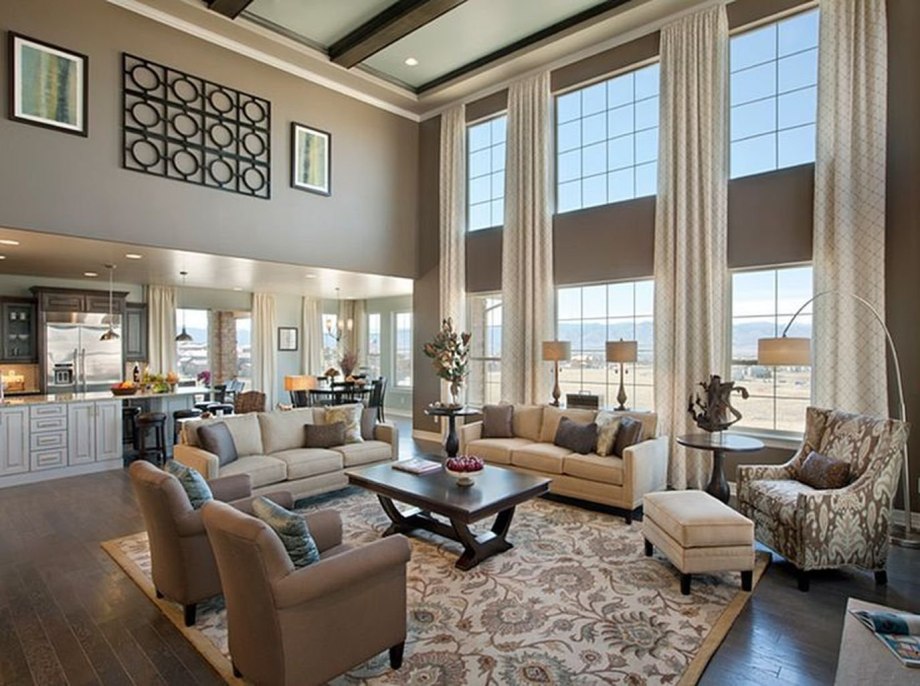 Гостиная с большими окнами
