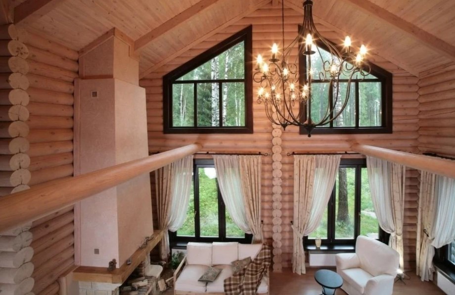 Интерьер домов из клееного бруса со вторым светом