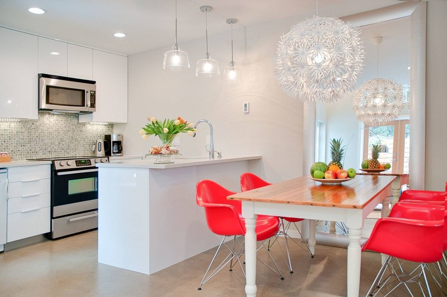 Белая люстра на кухню в интерьере
