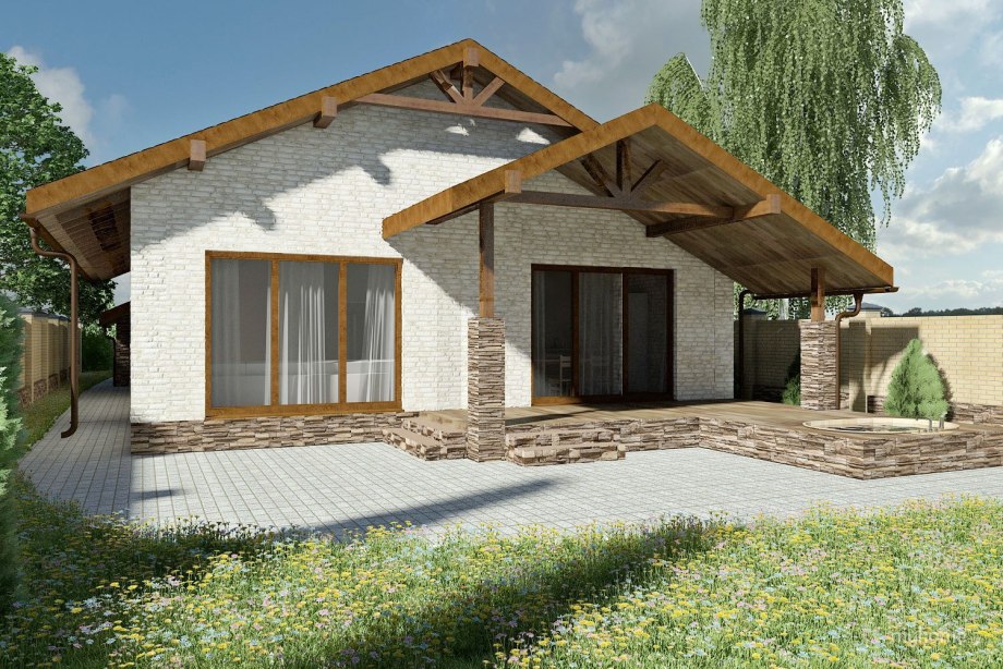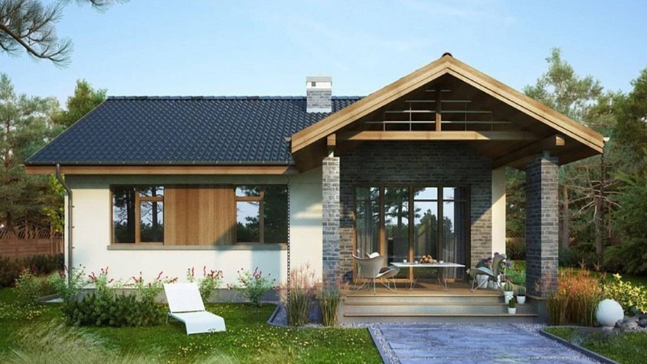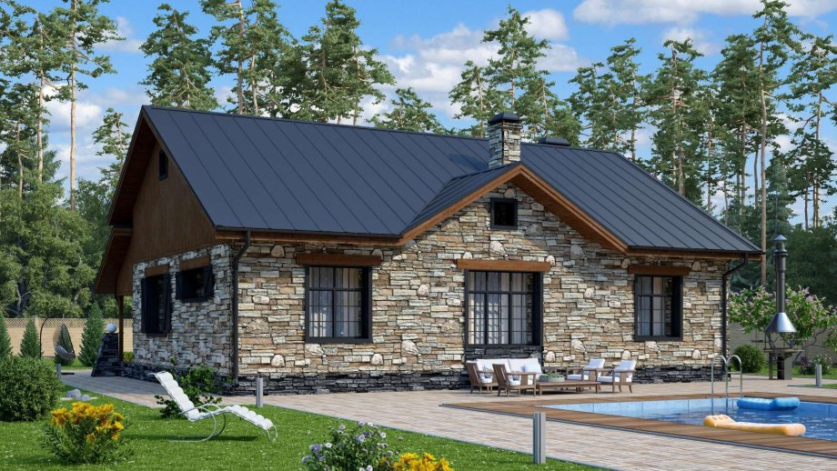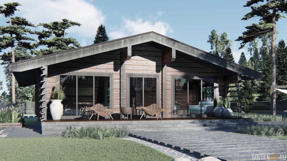Дом 110 кв м одноэтажный с крышей Шале проекты