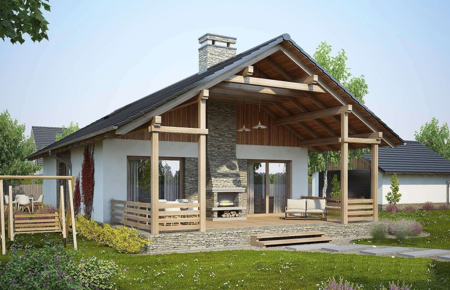Дом 100 кв м проекты одноэтажных в стиле Шале