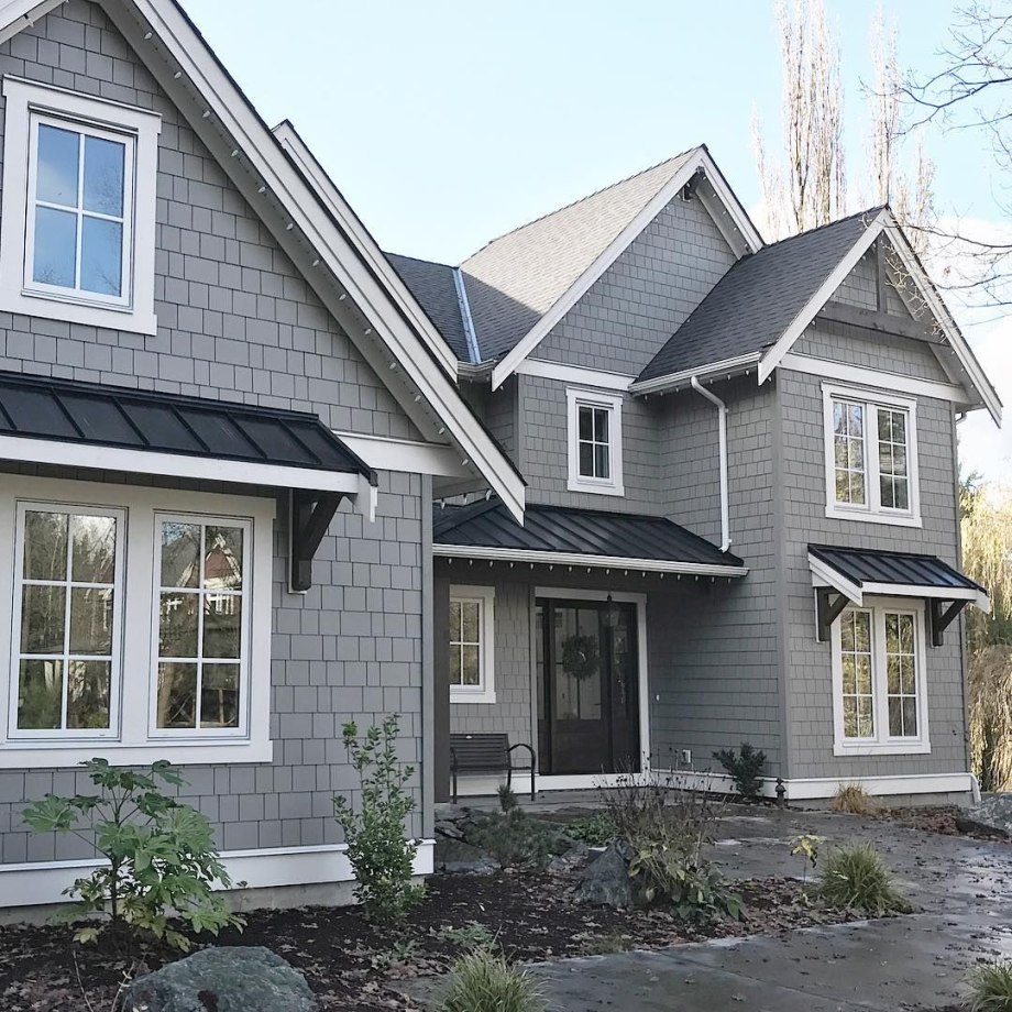 Серый дом с белыми окнами